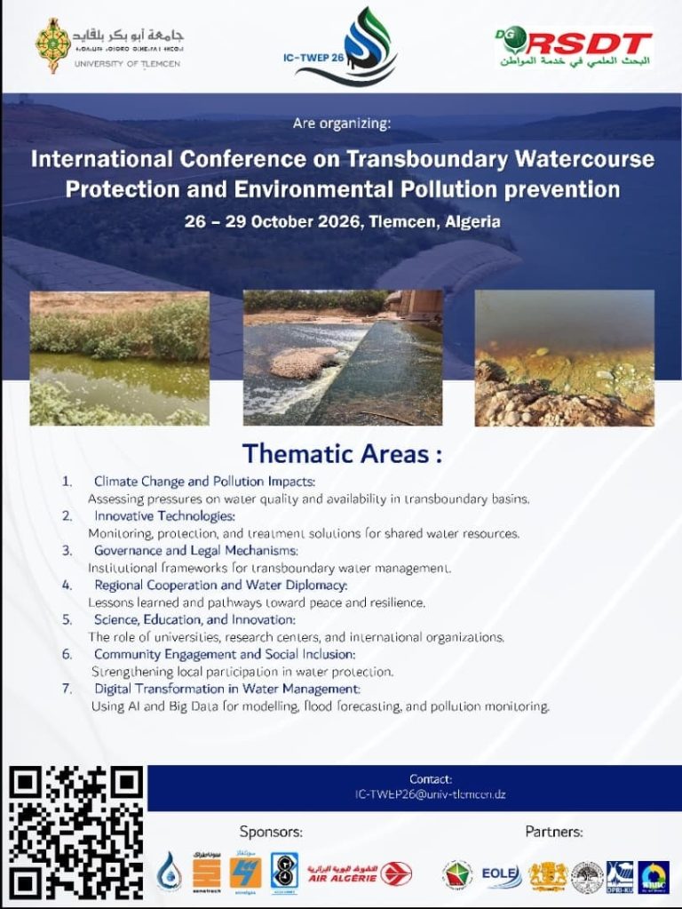 Annonce Conférence Internationale sur la Protection des Cours d’Eau Transfrontaliers et la Prévention de la Pollution Environnementale (IC-TWEP 2026) 22 janvier 20263 février 2026