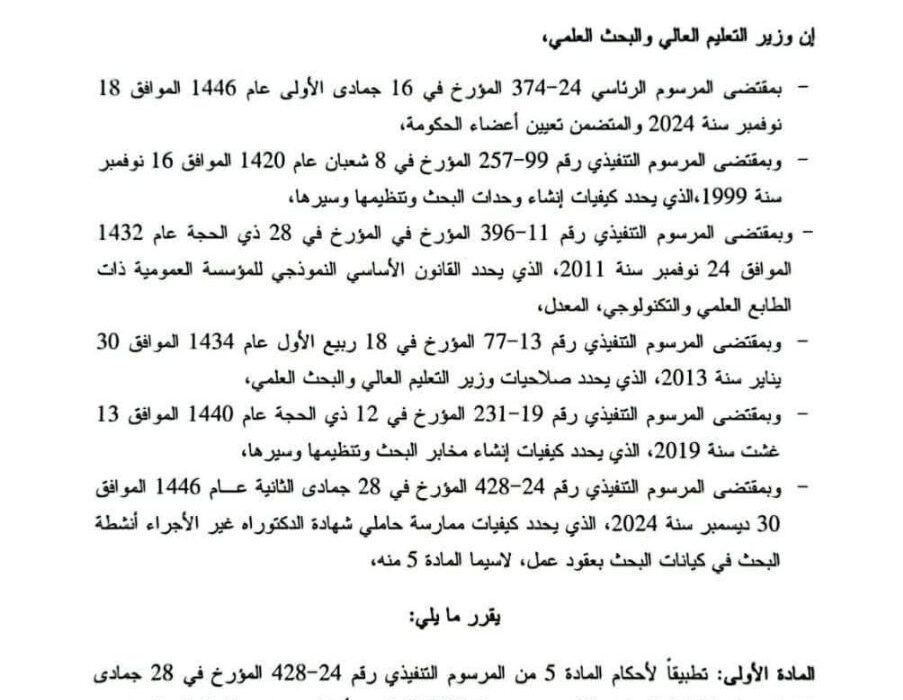 Recherche Scientifique les critères de sélection des titulaires de doctorat non salariés pour exercer une activité dans les entités de recherche scientifique et de développement technologique