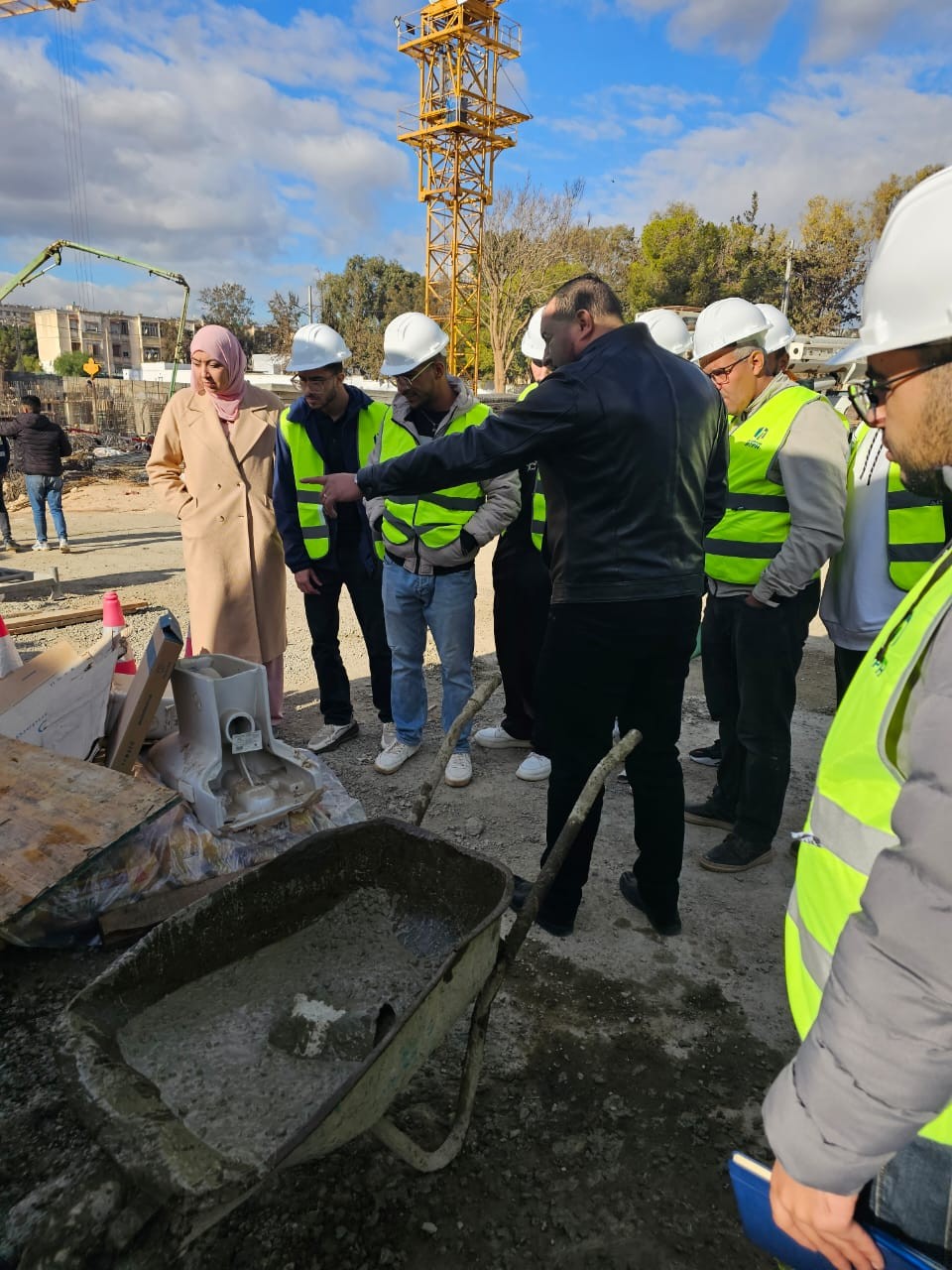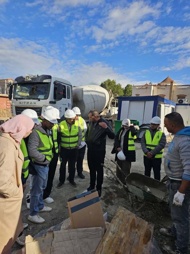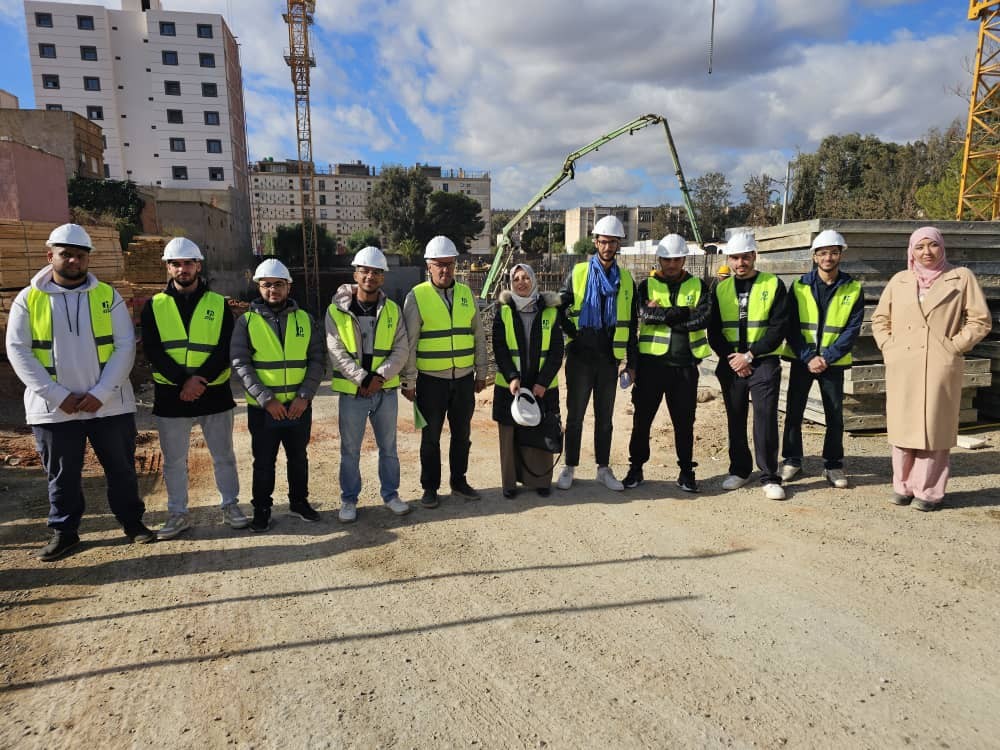 الزيارة الميدانية المنظّمةيوم الخميس 27 نوفمبر 2025 و التي اجراها طلاب السنة الثالثة تخصص "المباني المستدامة" بمرافقة الطاقم الاكاديمي لقسم الهندسة المدنية بالمدرسة الوطنية المتعددة التقنيات بوهران, موريس اودان و ذلك على مستوى مشروع شركة البناء حسناوي لانشاء 199 وحدة سكنية (مجمع مدينة, بن عمار بمرافال).