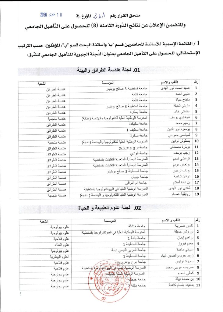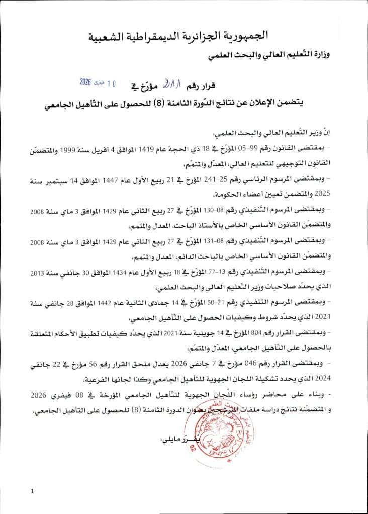 Résultats de la huitième (8ème) session de candidature en vue de l’obtention de l’habilitation universitaire
